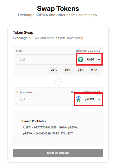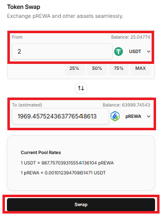 1. Navigate “Swap” to Buy pREWA.